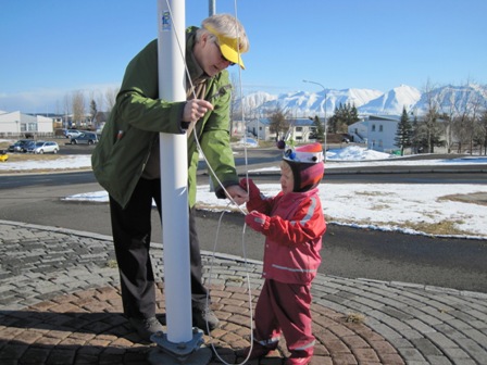 Í dag 18. apríl héldum við upp á 3 ára afmælið hennar Ásdísar Ingu en hún á afmæli þann 19. apríl. Hún málaði sér kórónu, flaggaði íslenska fánanum.
