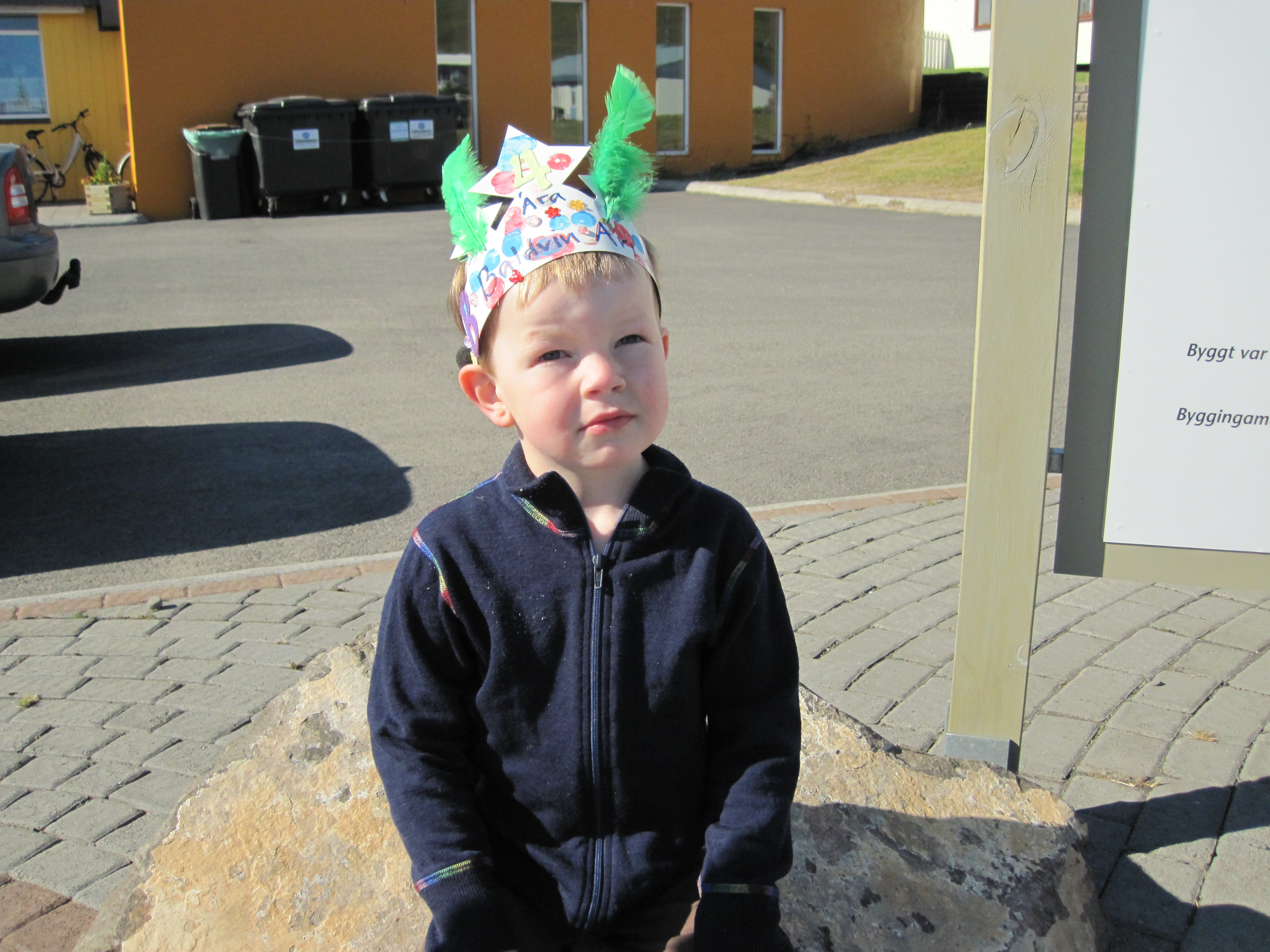 Baldvin Ari málaði sér kórónu og flaggaði íslenska fánanum.