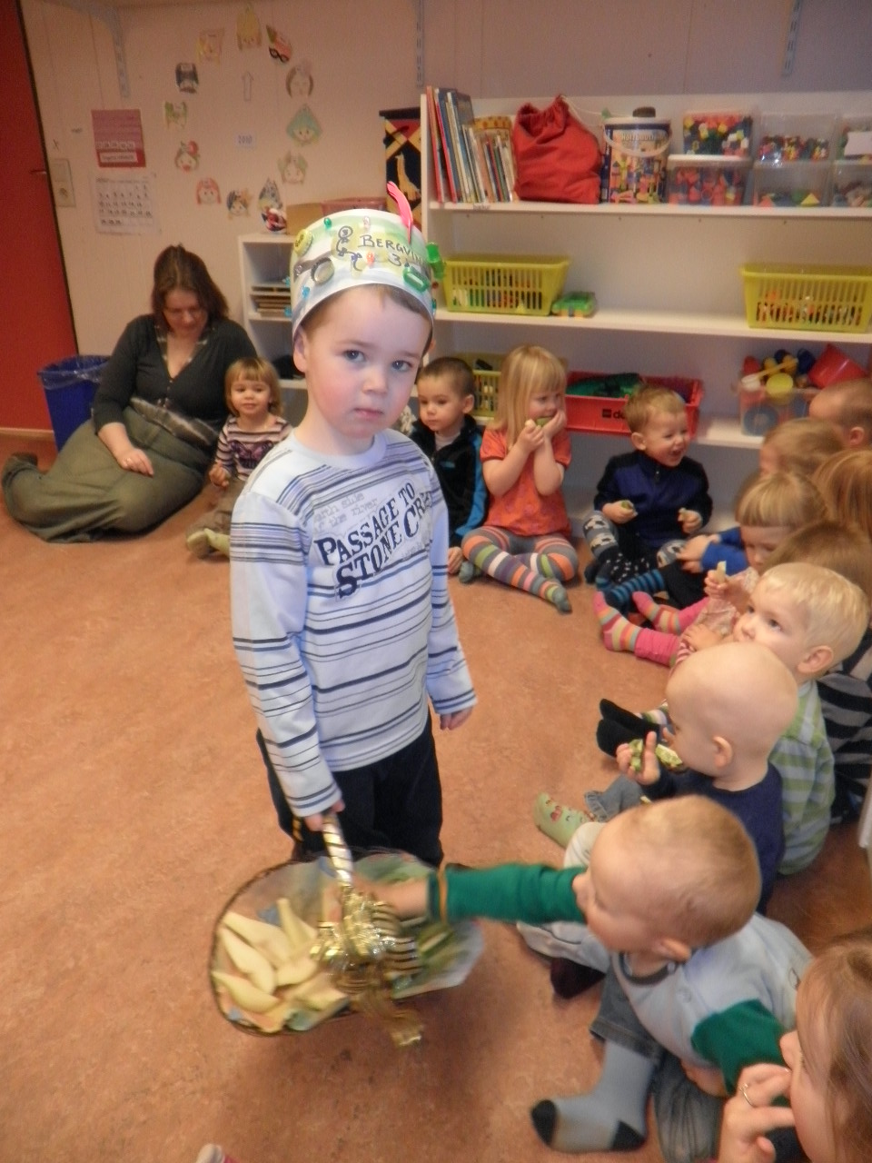 Bergvin Daði varð 3 ára þann 26. janúar.Bergvin Daði setti upp kórónuna sem hann gerði, afmælissöngurinn var sunginn fyrir hann, hann bauð upp á ávexti í ávaxtastund, fór út og flaggaði og var þjónn. Við óskum honum innilega til hamingju með daginn.