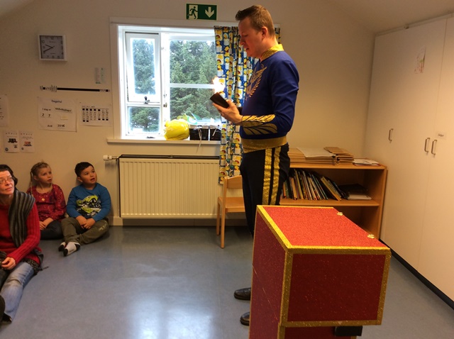 kíkti við hjá okkur og sýndi okkur nokkur töfrabrögð og leyfði okkar að taka þátt í þeim.