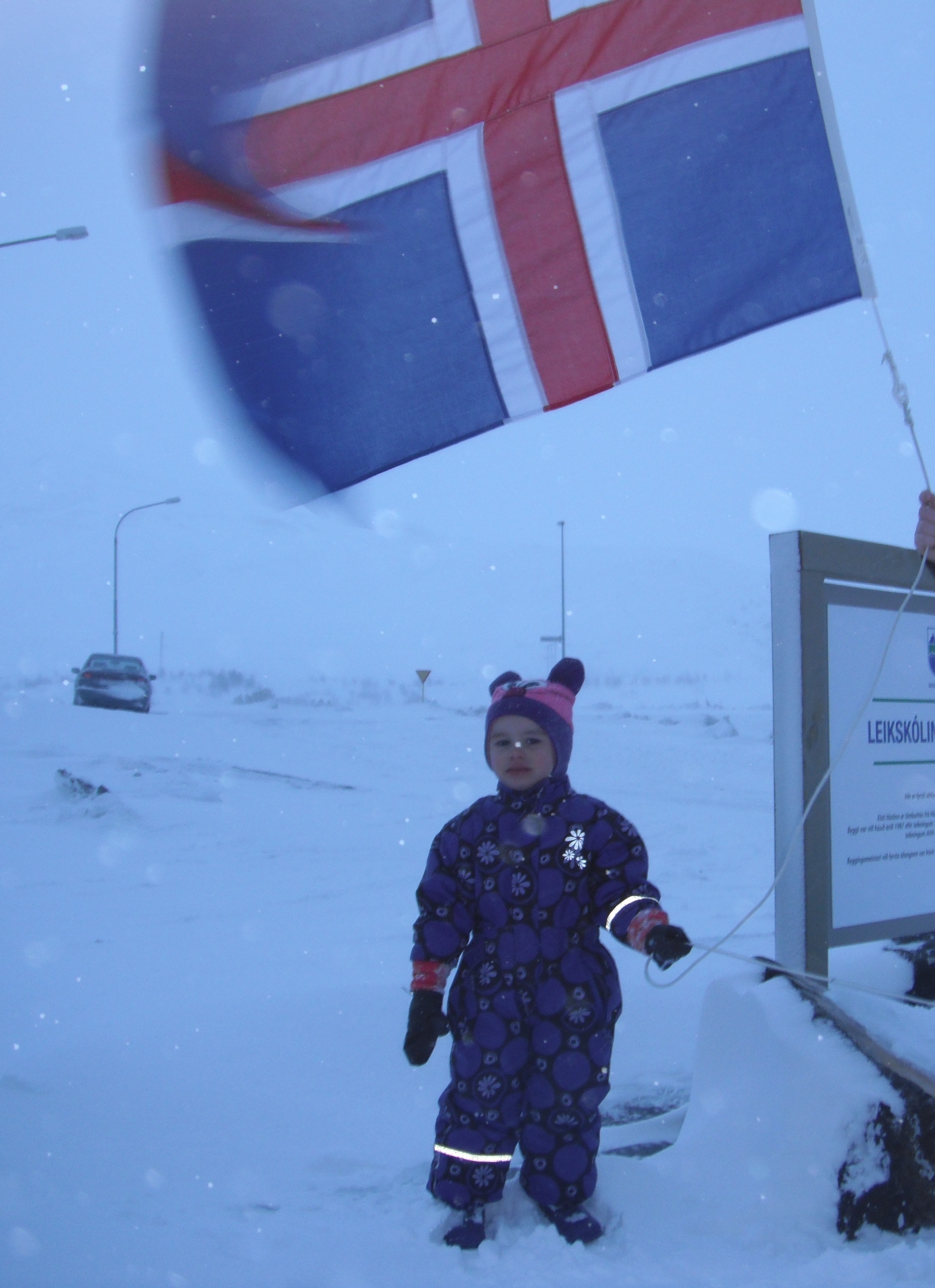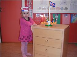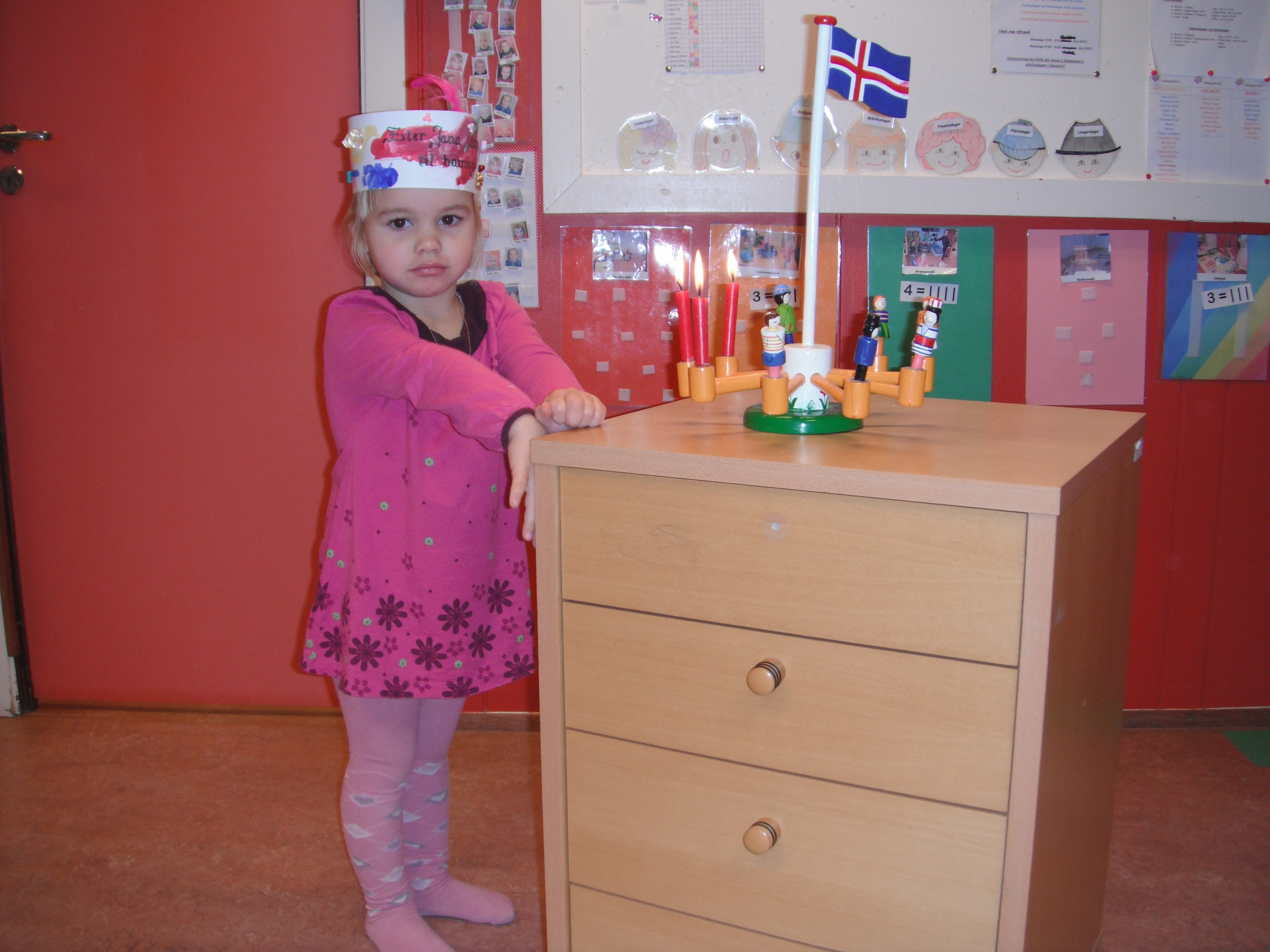 Ester Jana bjó sér til kórónu, fór út að flagga íslenska fánanum, síðan sungum við fyrir hana afmælissönginn og hún blés á kerti.