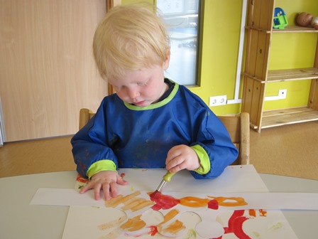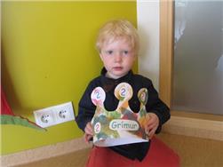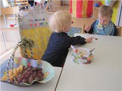 Í ávaxtastundinni sungum við fyrir hann afmælissönginn, hann hefur stækkað í nótt og þetta er afmæliskveðja.