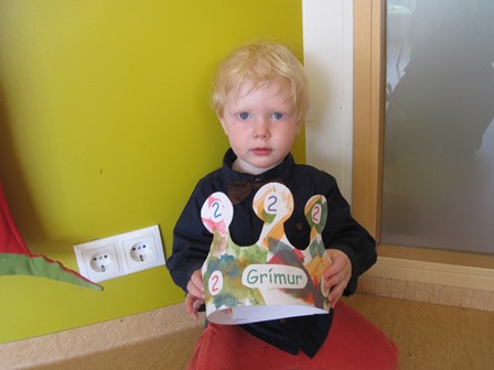 Grímur málaði á flottu kórónuna sína.