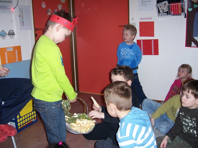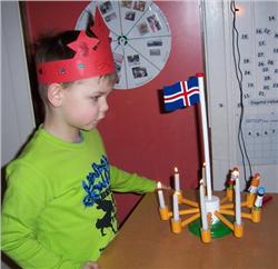 Gunnlaugur Rafn varð 6 ára í dag 8. janúar og óskum við honum til hamingju með daginn.  Hann byrjaði daginn á því að búa sér til kórónu, síðan bauð hann börnunum upp á ávexti og blés á kertin.  Börnin sungu svo afmælissönginn í tilefni afmælisins.  Síðan fór hann út og flaggaði.