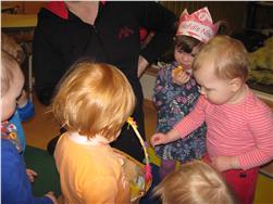 Hún var búin að búa sér til kórónu og setti hana upp í tilefni dagsins. Í ávaxtastundinni sungum við fyrir hana afmælissönginn, hún hefur stækkað í nótt og þetta er afmæliskveðja. Síðan bauð hún öllum á Skýjaborg upp á ávexti úr afmælisávaxtakörfunni. Flögguðum fyrir hana í tilefni dagsins.
