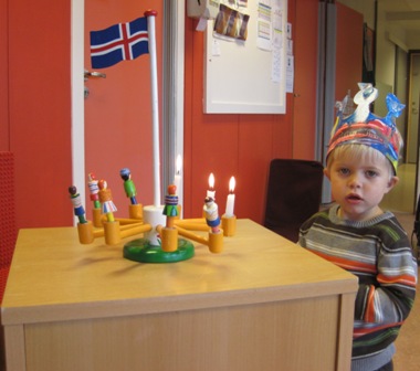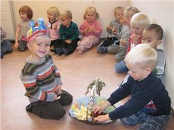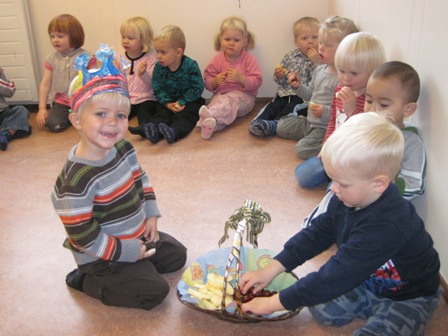 Hafsteinn Thor málaði sér kórónu og skreytti hana. Í ávaxtastundinni sungum við fyrir hann afmælissönginn og