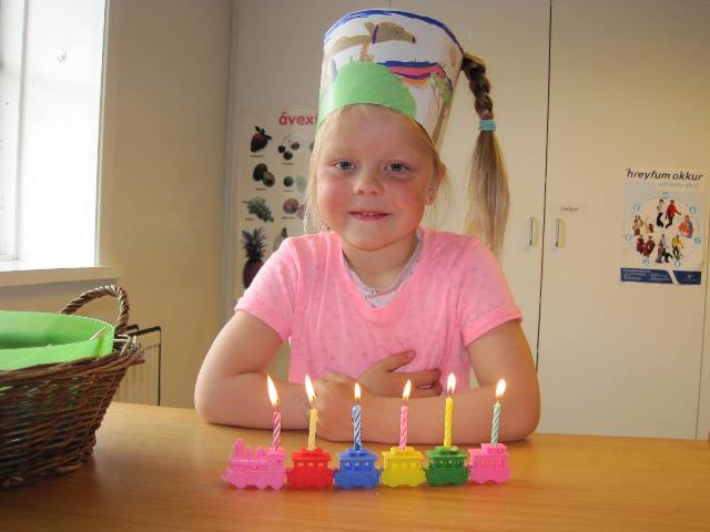 Írena Rut bjó sér til fallega kórónu, blés á kertin 6 og