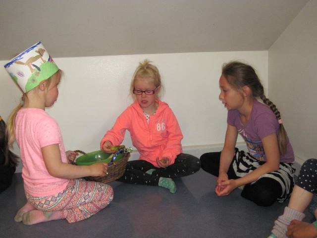 bauð svo öllum í Kátakoti upp á ávexti úr afmæliskörfunni.