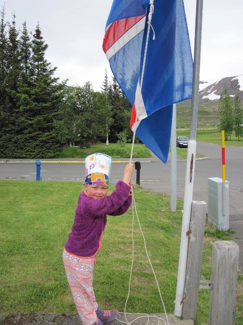 Að veislu lokinni fór hún út og flaggaði fánanum í tilefni dagsins.