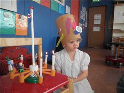 Í morgun héldum við upp á afmælið hennar Írisar Bjarkar en hún er 4. ára í dag. Það fyrsta sem hún gerði var að setja upp kórónuna sem hún var búin að búa sér til. Síðan fór hún út og flaggaði og bauð öllum upp á ávexti. Í ávaxtastundinni sungu allir afmælissönginn fyrir hana í tilefni dagsins. Einnig var hún þjónn dagsins. Við óskum henni innilega til hamingju með daginn frá okkur öllum á Skakkalandi.