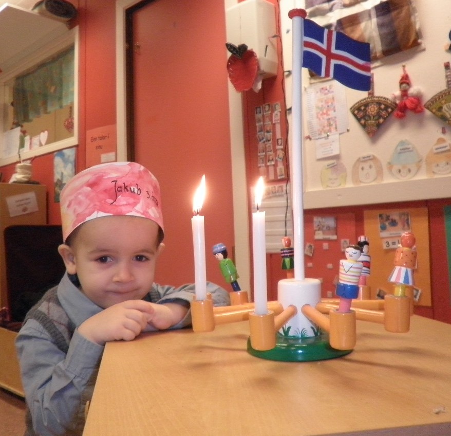 Jakub varð 3 ára í dag 5. janúar. Hann bjó sér til kórónu og fór út og flaggaði íslenska fánanum. Í ávaxtastundinni sungum við fyrir hann afmælissönginn og hann blés á kertin þrjú. Eftir sönginn bauð Jakub öllum á Hólakoti upp á ávexti úr afmælisávaxtakörfunni, einnig var hann þjónn dagsins. Við óskum Jakub og fjölskyldu hans innilega til hamingju með daginn frá okkur öllum á Hólakoti.