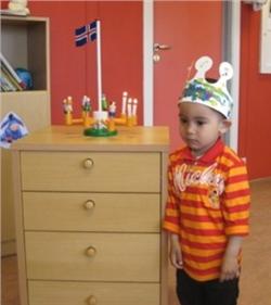 Jens Adrían málaði sér kórónu og skreytti hana. Í ávaxtastundinni sungum við fyrir hann afmælissönginn og