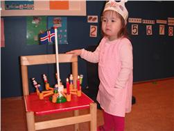Jóhanna Fönn varð 2. ára í dag 23. nóvember. Hún bjó sér til kórónu og fór út og flaggaði íslenska fánanum. Í ávaxtastundinni sungum við fyrir hana afmælissönginn og hún blés á kertin tvö. Eftir sönginn bauð Jóhanna öllum á Skakkalandi upp á ávexti úr afmælisávaxtakörfunni. Við óskum Jóhönnu Fönn og fjölskyldu innilega til hamingju með daginn frá okkur öllum á Skakkalandi.