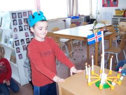 Þann 11. mars varð Jón Steinar 6 ára.  Hann byrjaði á því að setja upp kórónuna sem hann bjó til sjálfur deginum áður og svo í ávaxtastund bauð hann upp á ávexti og blés á kertin, allir sungu svo fyrir hann í tilefni dagsins.  Jón Steinar fór svo út og flaggaði með Ingu þegar inn var komið valdi hann fyrstur í valinu.  Í hádeginu var hann þjónninn.  Við óskum honum til hamingju með afmælið frá öllum á Hólakoti.