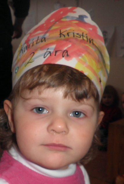 Á sunnudaginn síðasta þann 21. mars varð hún Karita Kristín 2. ára. Við héldum upp á afmælið hennar á mánudaginn 22. mars. Það fyrsta sem hún gerði var að setja upp kórónuna sem hún var búin að búa sér til. Síðan fór hún út og flaggað og bauð öllum upp á ávexti. Í ávaxtastundinni sungu allir afmælissönginn fyrir hana í tilefni dagsins. Einnig var hún þjónn dagsins. Við óskum henni innilega til hamingju með daginn frá okkur öllum á Skakkalandi.