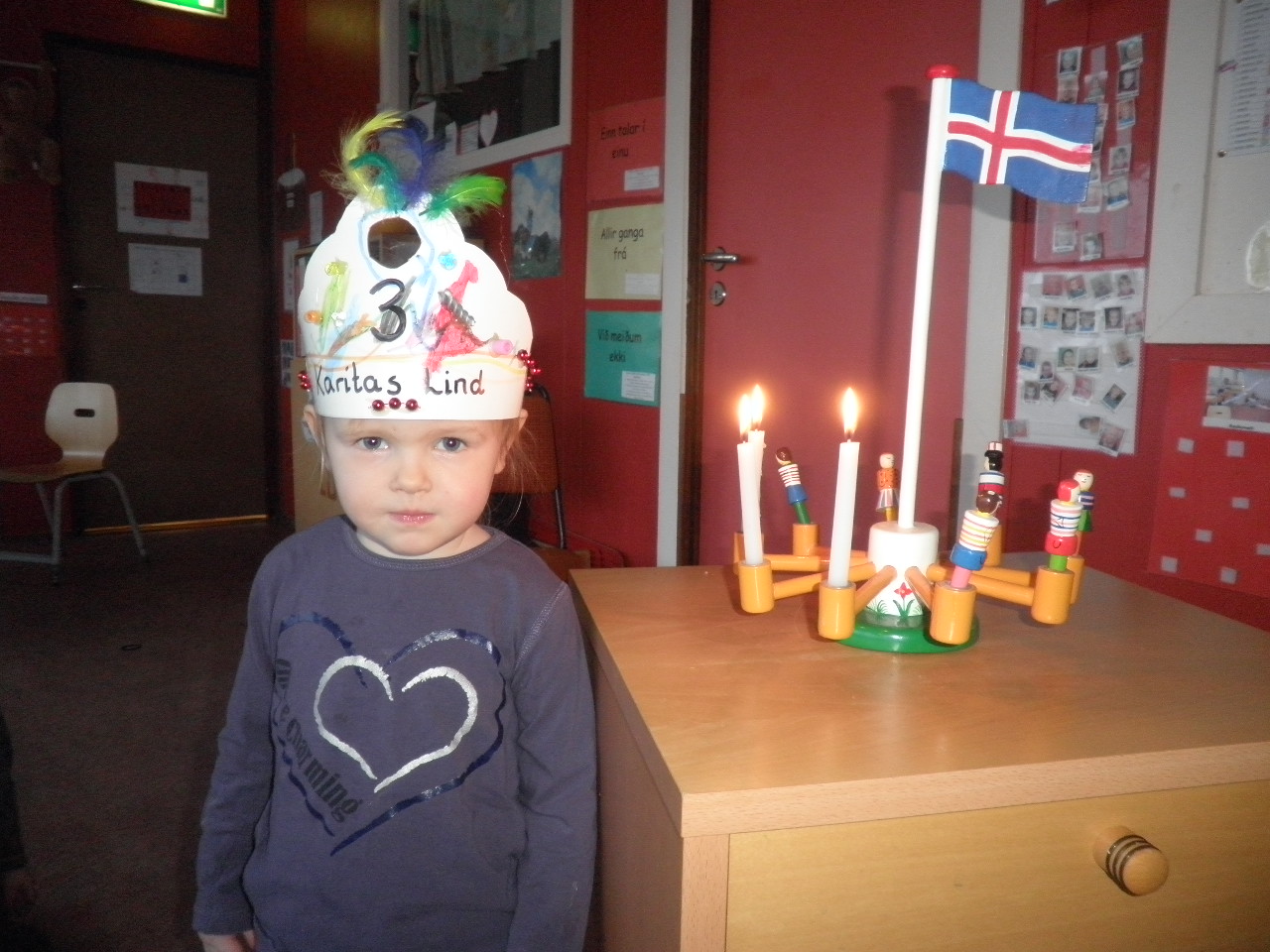 Í dag 15. febrúar varð Karitas Lind 3. ára. Hún bjó sér til kórónu og fór út og flaggaði íslenska fánanum. Í ávaxtastundinni sungum við fyrir hana afmælissönginn og hún blés á kertin þrjú. Eftir sönginn bauð Karitas Lind öllum á Hólakoti upp á ávexti úr afmæliskörfunni, einnig var hún þjónn dagsins. Við óskum Karitas Lind og fjölskyldu innilega til hamingju með daginn frá okkur öllum á Hólakoti.