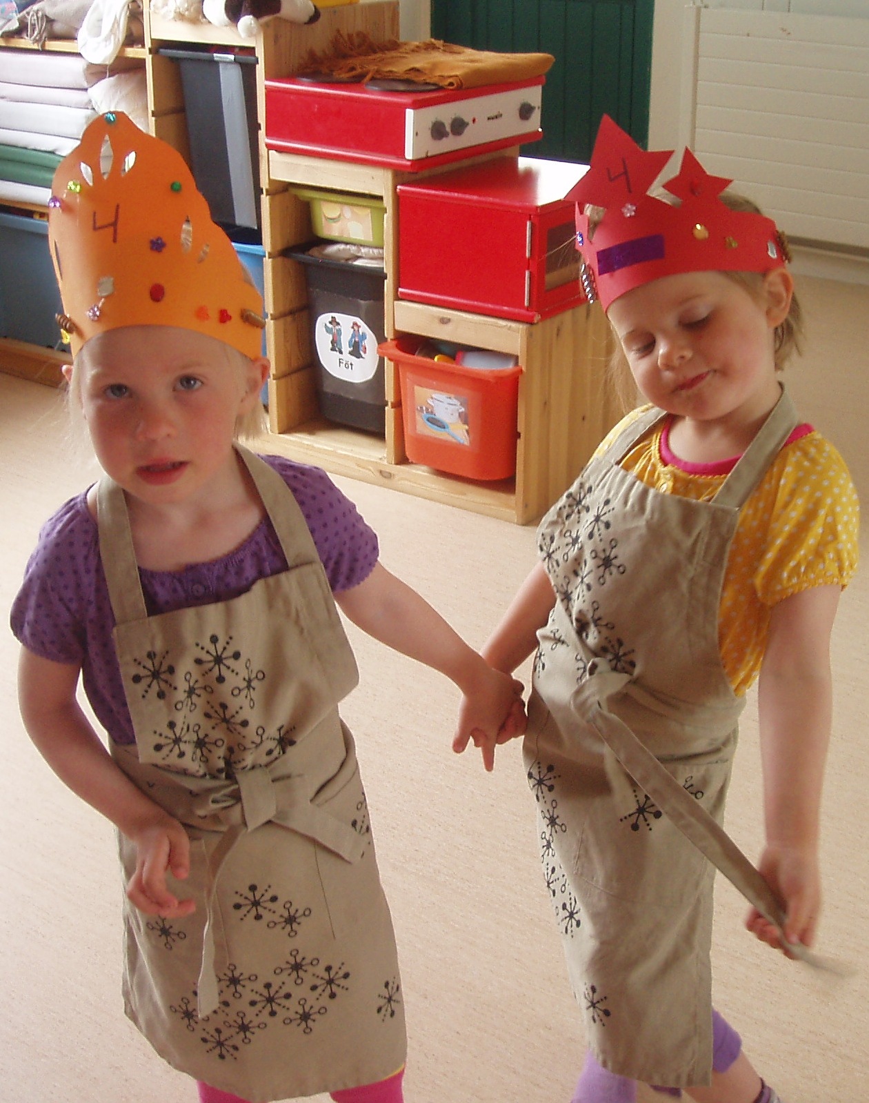 Á föstudaginn héldum við upp á 4. ára afmæli Kristínar Ernu og Elsu Daggar. En þær áttu afmæli þann 28. júní. Þær bjuggu sér til kórónur, fóru út og flögguðu og buðu upp á ávexti. Einnig var sungið fyrir þær afmælissöngurinn bæði á söngfundi og í afmælisstundinni. Þær voru líka þjónar dagsins. Við óskum þeim innilega til hamingju með daginn. Kveðja frá öllum á Skakkalandi.