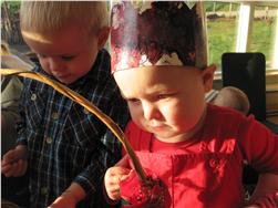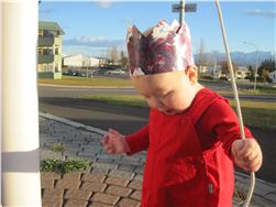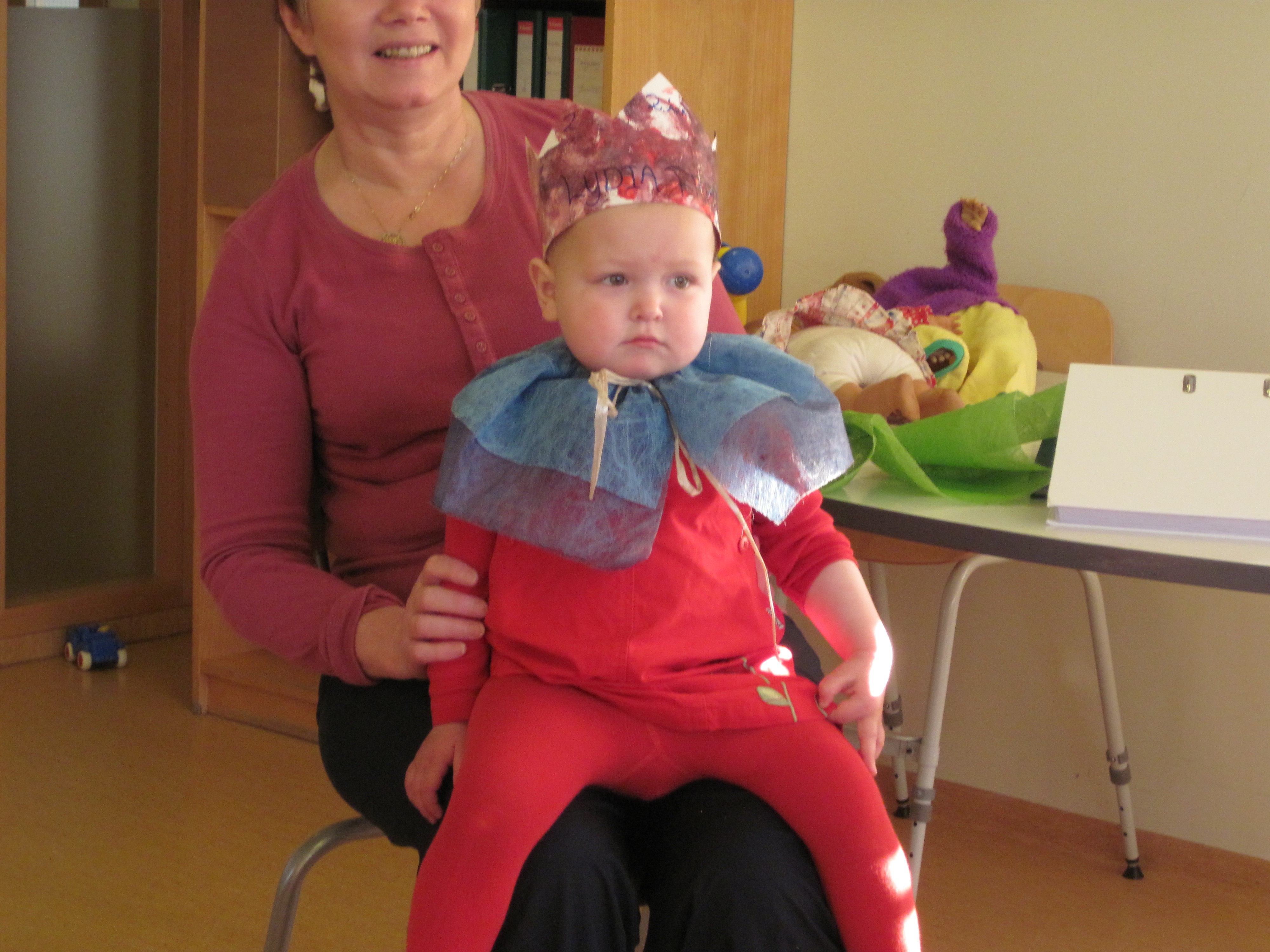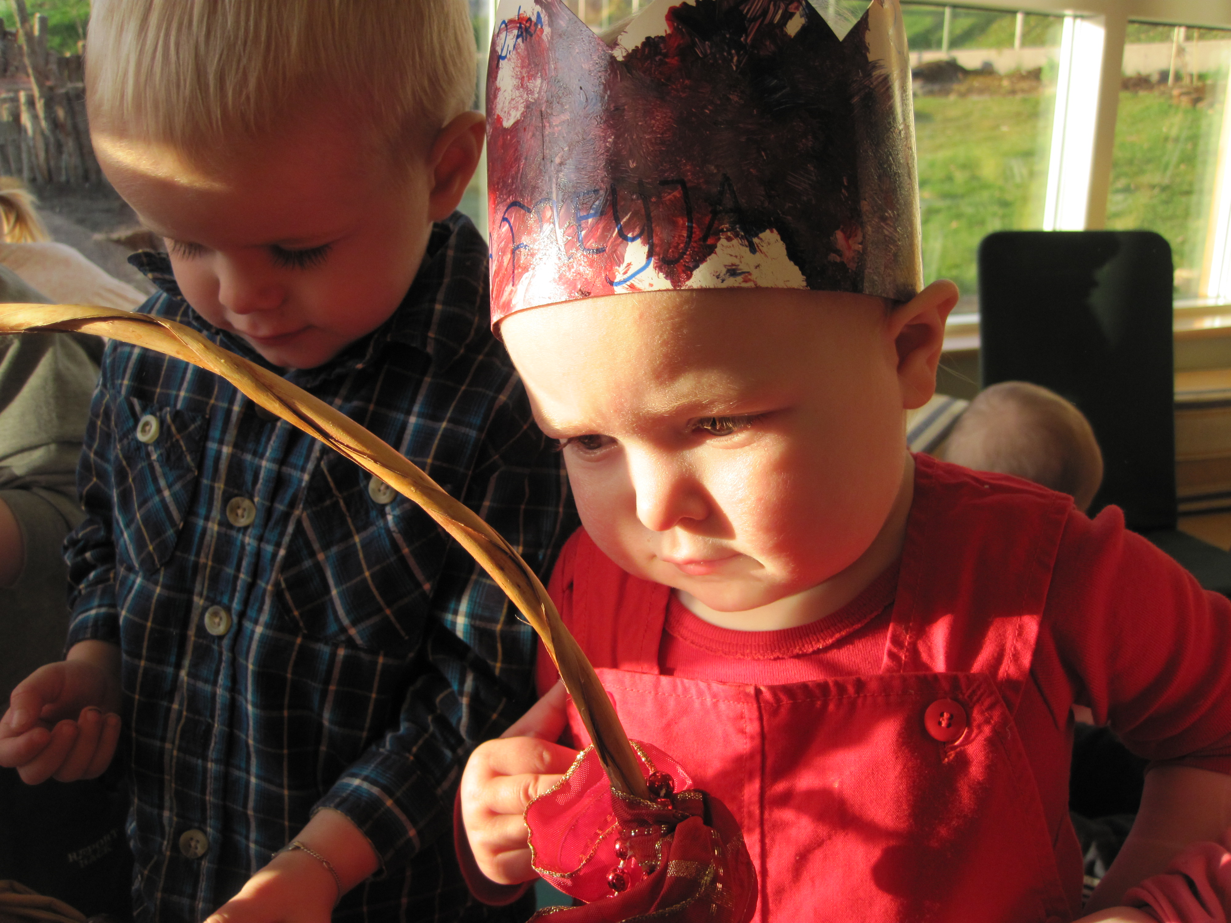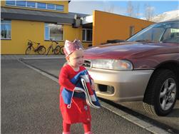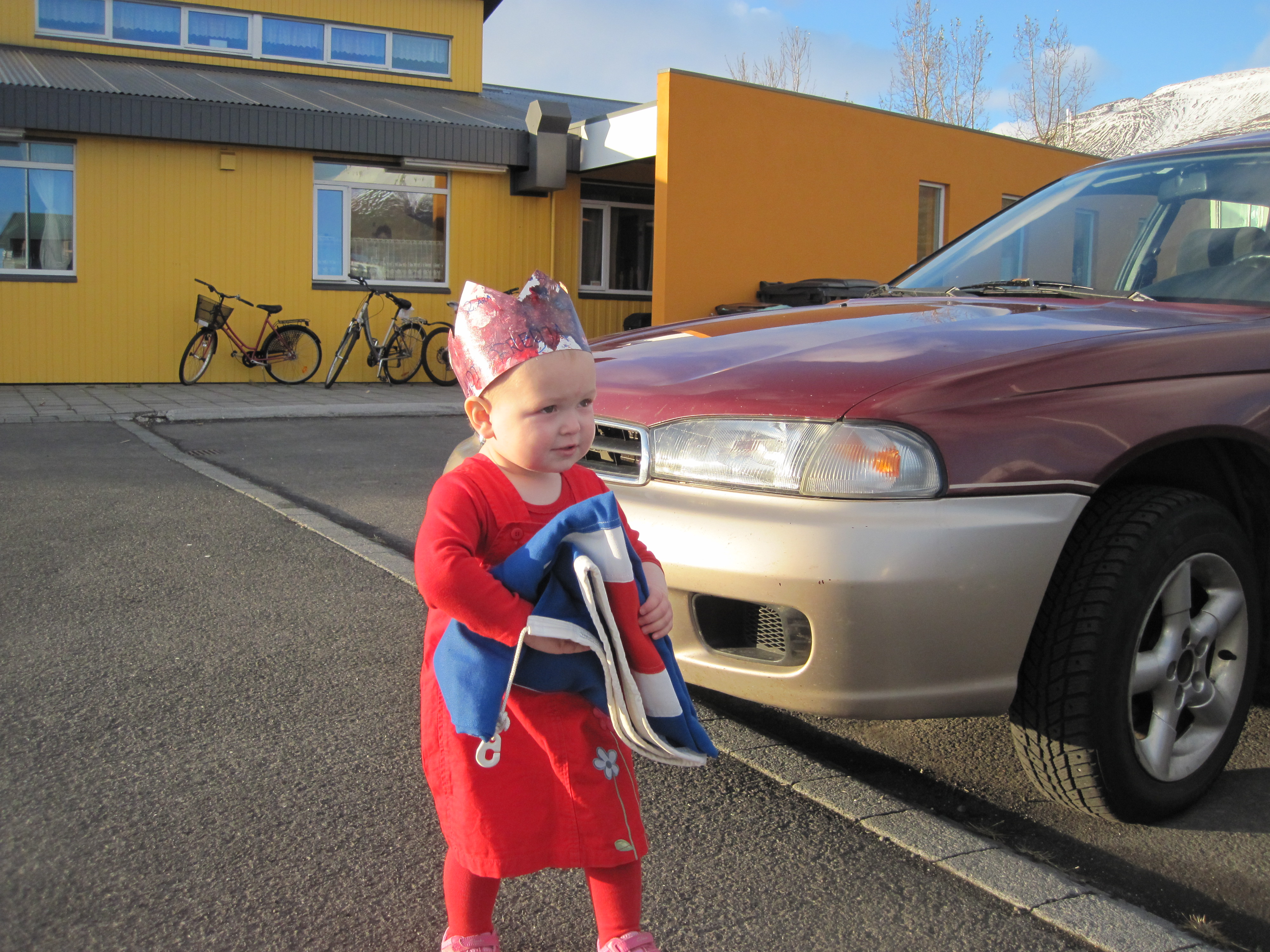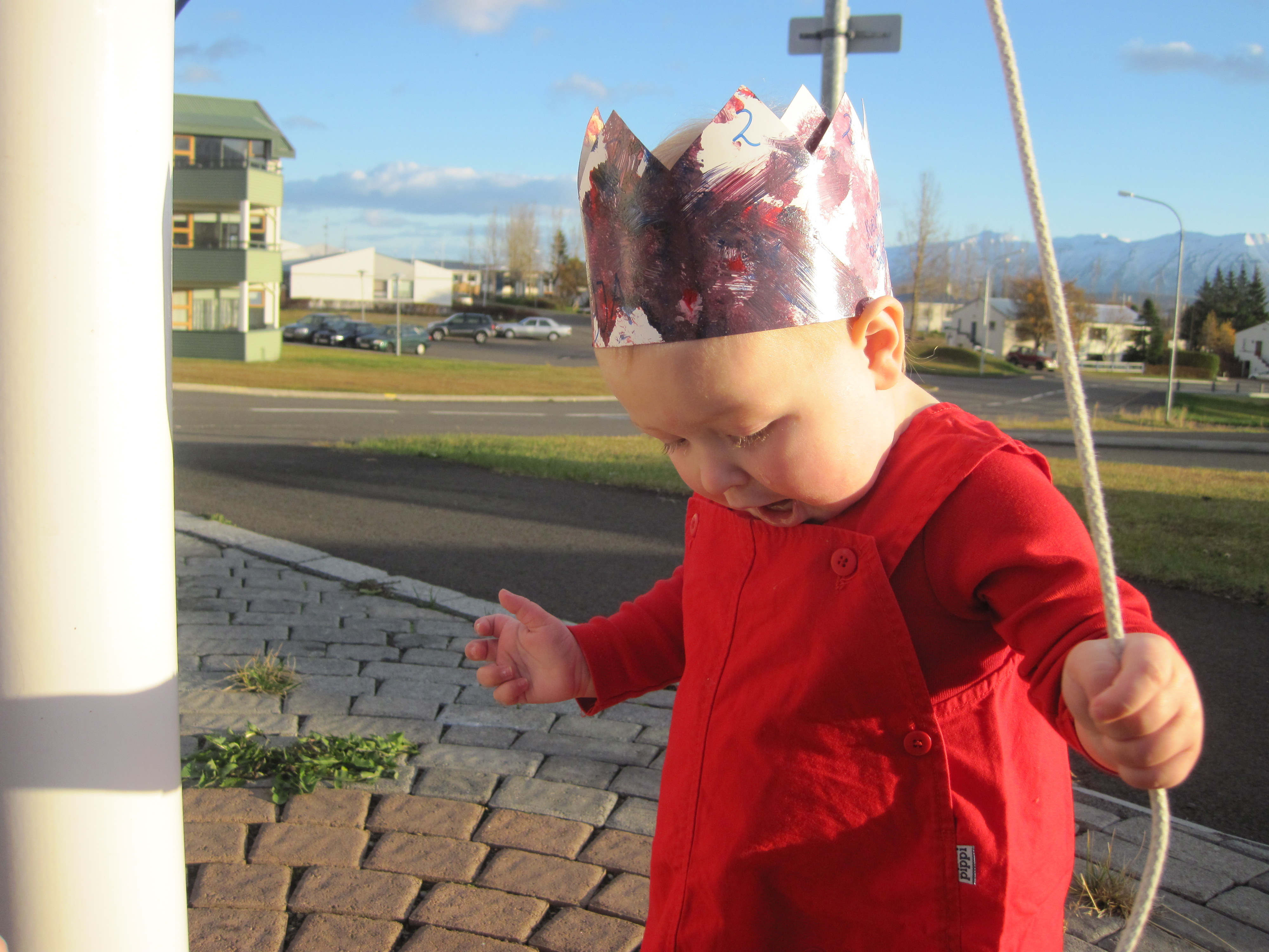 Hún málaði sér kórónu og fór út og flaggaði íslenska fánanum. Í ávaxtastundinni sungum við fyrir hana afmælissönginn og