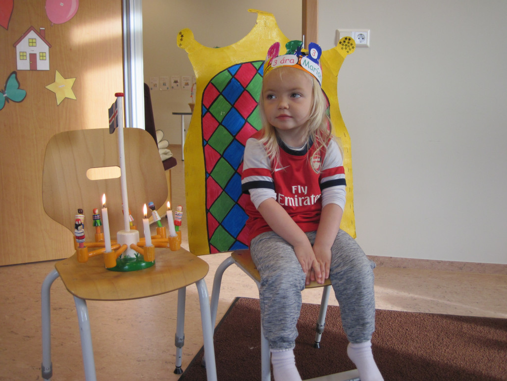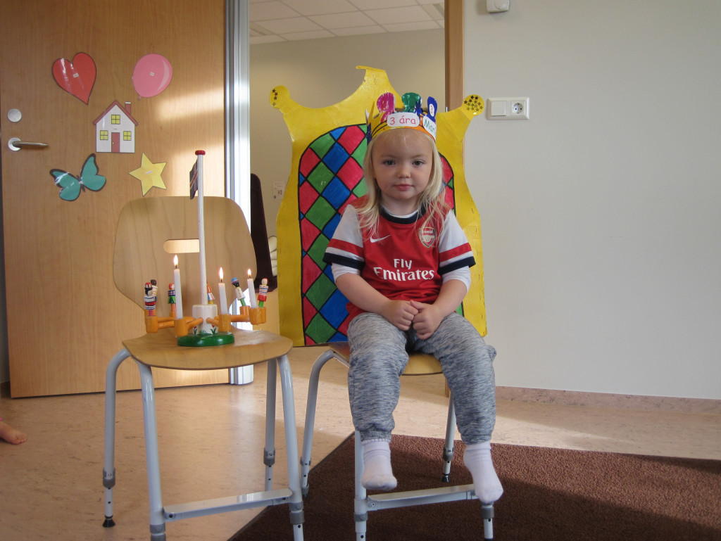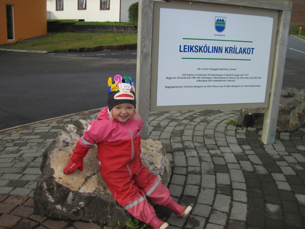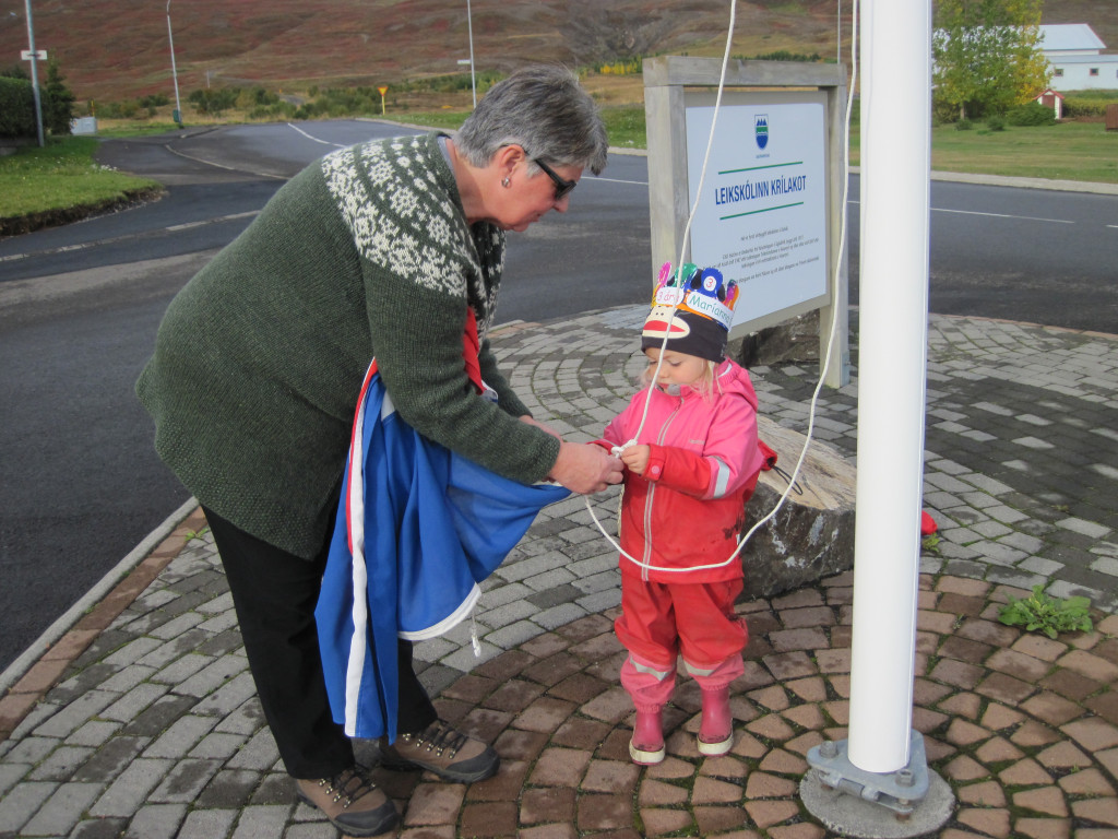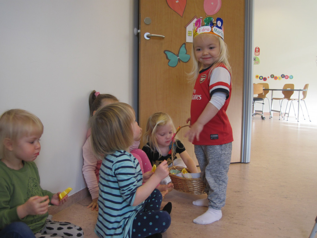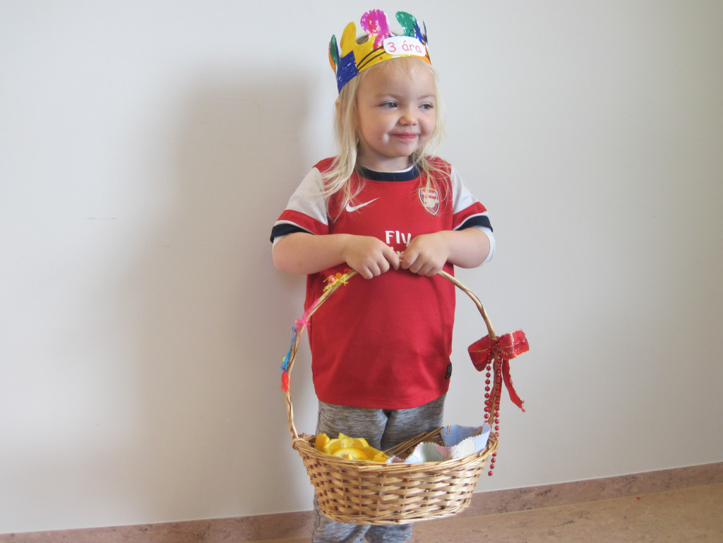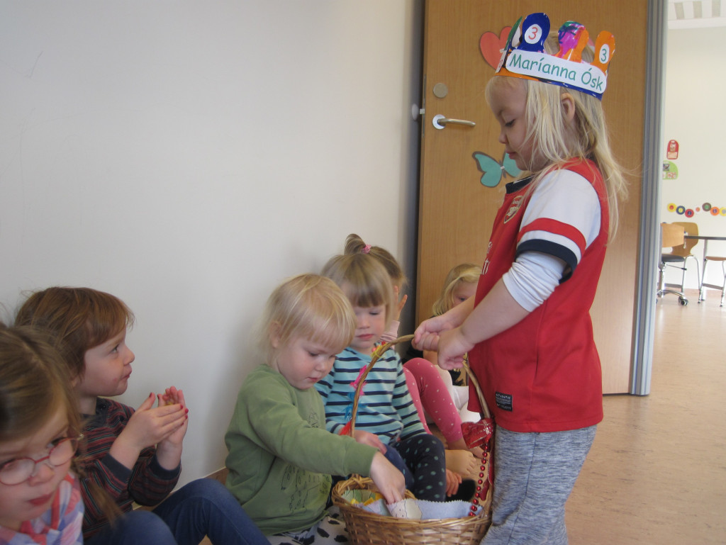 Maríanna Ósk bjó sér til glæsilega kórónu, og flaggaði íslenska fánanum. Við sungum fyrir hana afmælissönginn og að lokum bauð hún öllum á Mánakoti upp á ávexti úr afmæliskörfunni. Við óskum Maríönnu Ósk og fjölskyldu hennar innilega til hamingju með daginn frá öllum í Krílakoti.