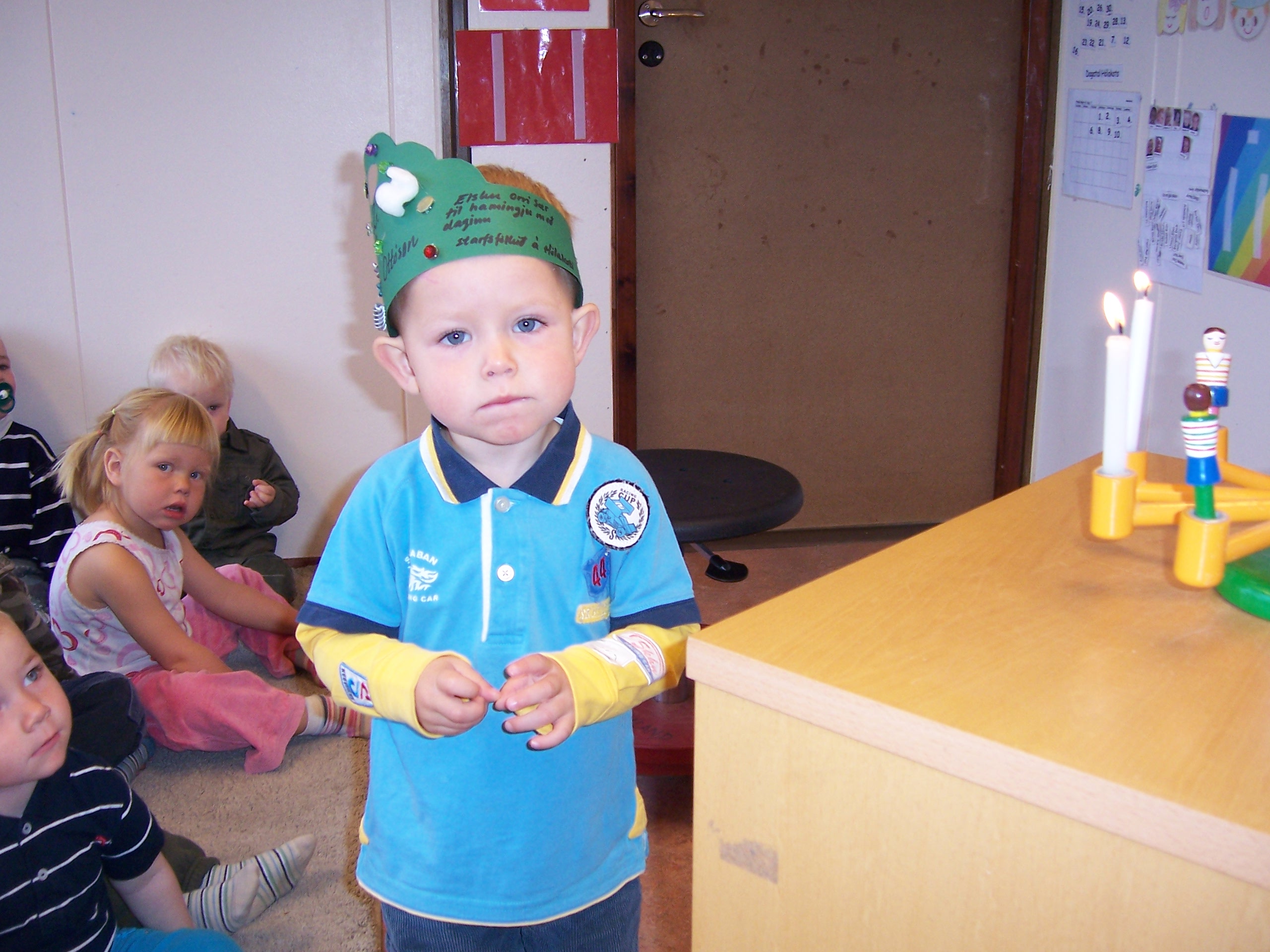 Þann 8. ágúst varð Orri Sær 2 ára og var haldið upp á afmælið hans 12. ágúst hér í leikskólanum. Hann byrjaði daginn á því að búa sér til kórónu, fór út að flagga, bauð öllum upp á ávexti og svo sungu allir í tilefni dagsins. Einnig var hann þjónn dagsins. Við óskum ´honum til hamingju með daginn frá öllum á Hólakoti.