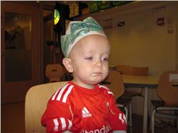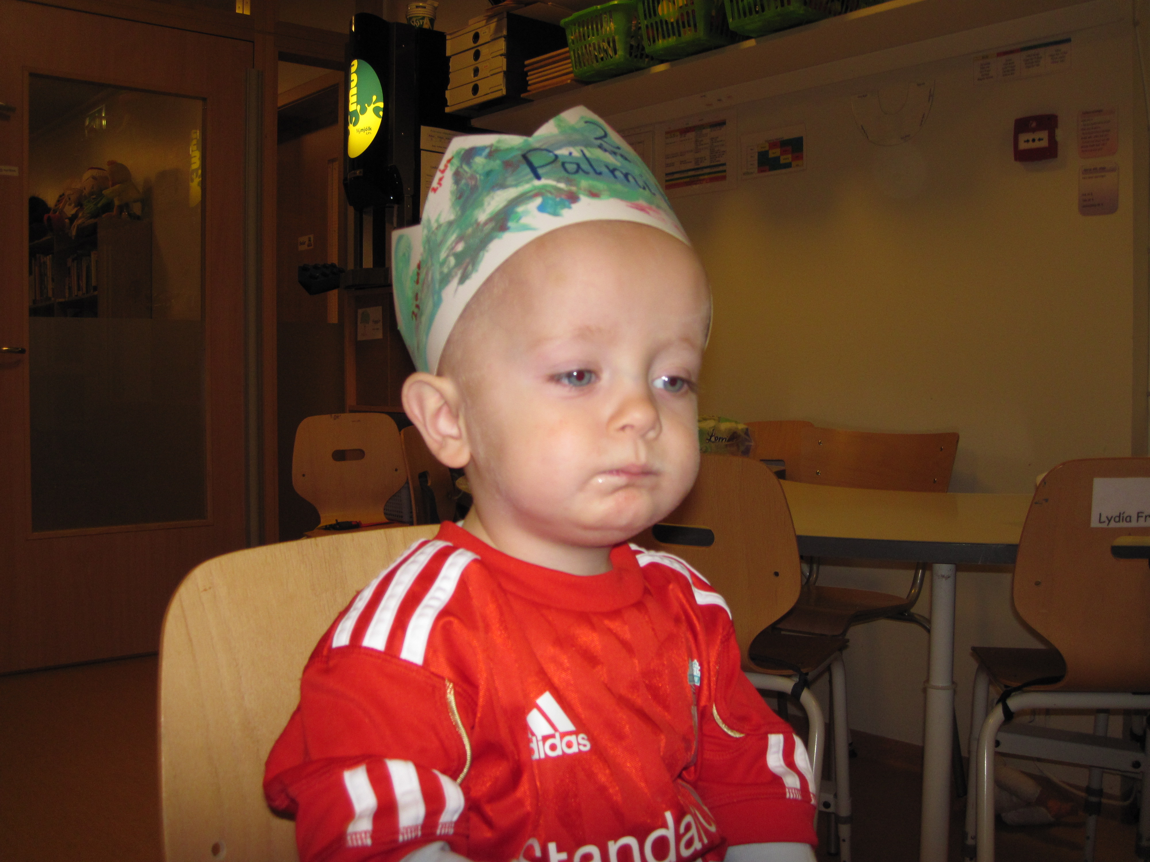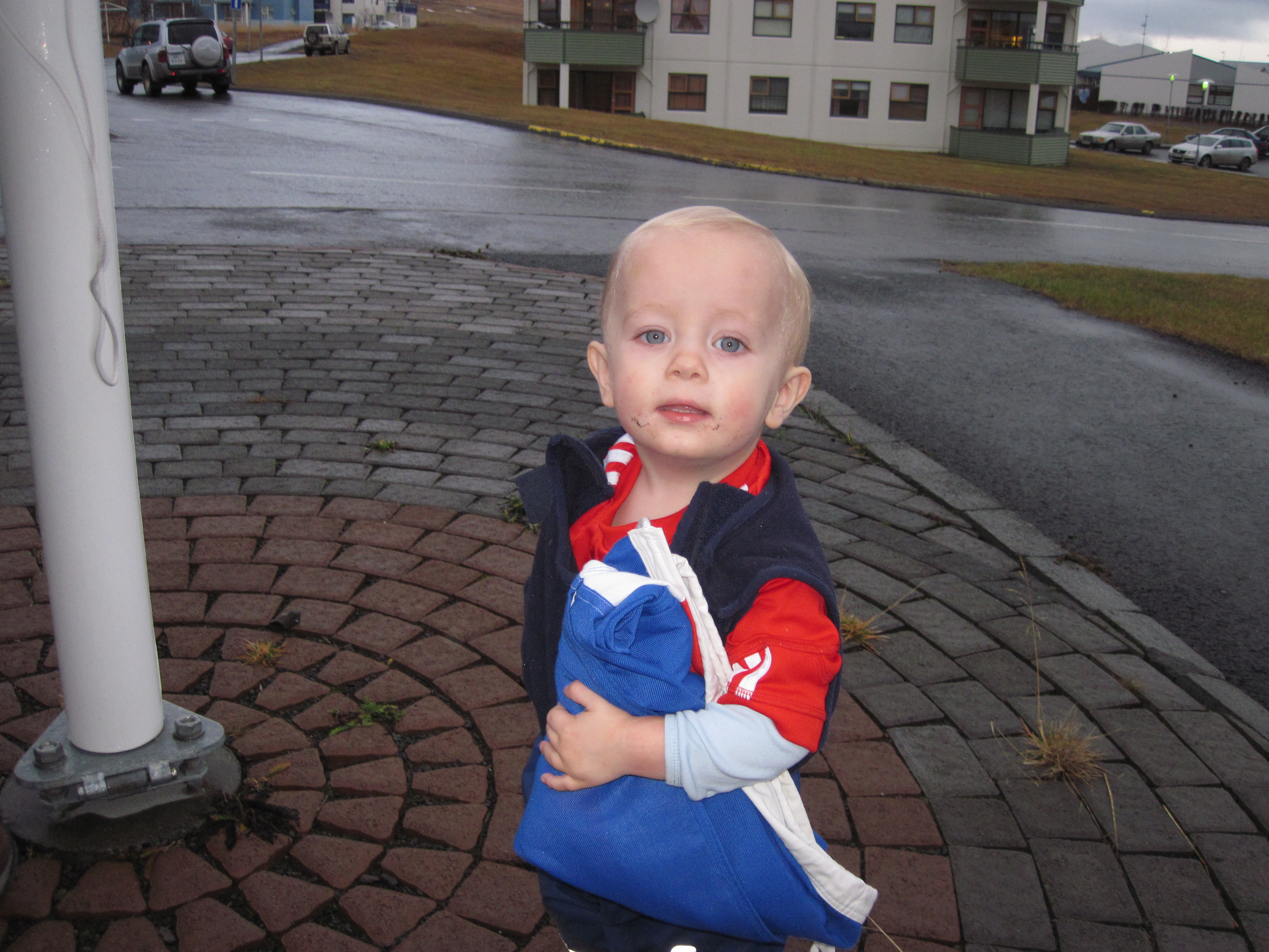 Hann málaði sér kórónu og fór út og flaggaði íslenska fánanum. Í ávaxtastundinni sungum við fyrir hann afmælissönginn og