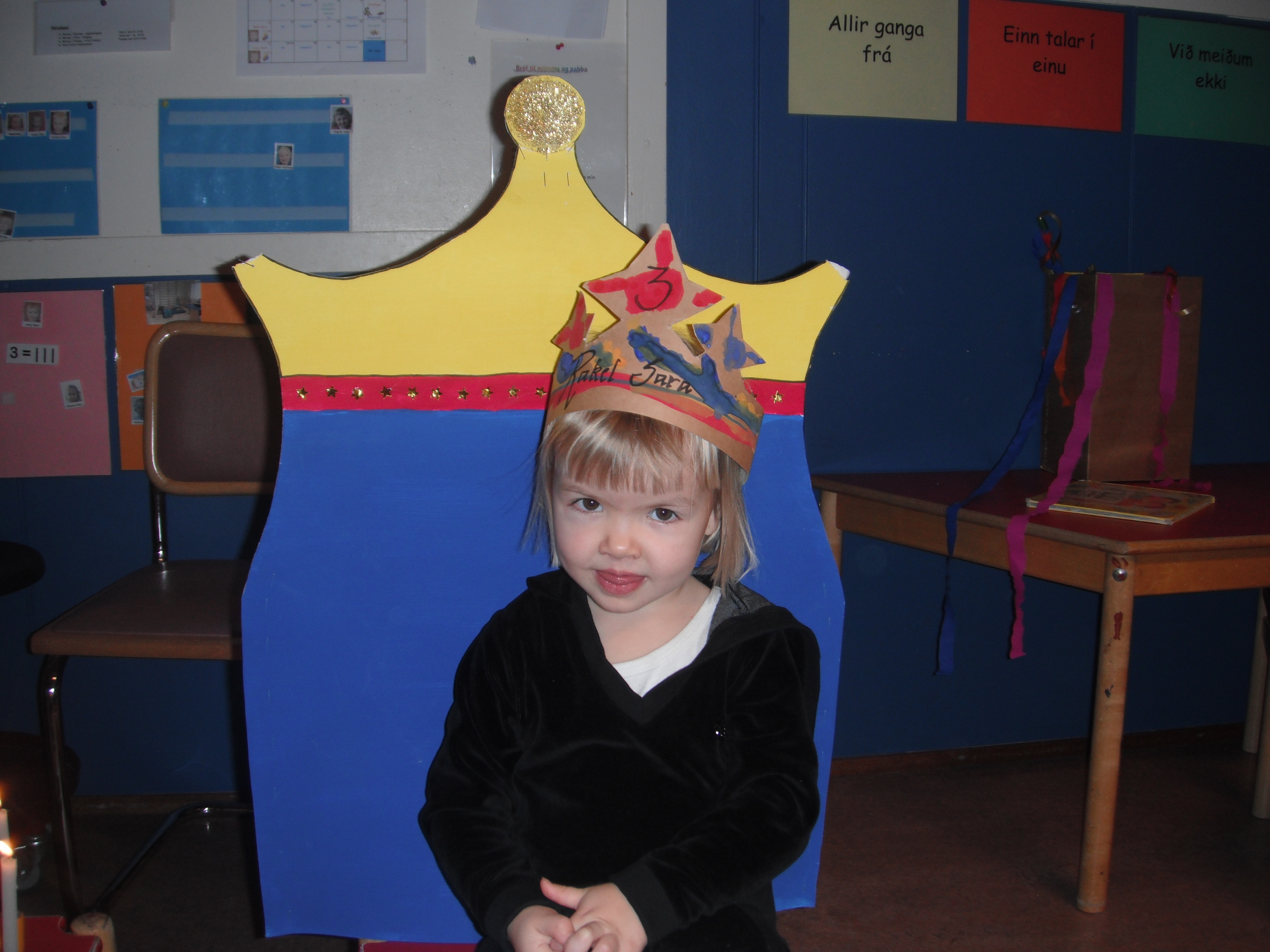 Í dag héldum við upp á 3. ára afmlælið hennar Rakelar Söru en hún á afmlæi á sunnudaginn 16. janúar. Hún bjó sér til kórónu og fór út og flaggaði íslenska fánanum. Í ávaxtastundinni sungum við fyrir hana afmælissönginn og hún blés á kertin þrjú. Eftir sönginn bauð Rakel Sara öllum á Skakkalandi upp á ávexti úr afmælisávaxtakörfunni. Við óskum Rakel Söru og fjölskyldu innilega til hamingju með daginn frá okkur öllum á Skakkalandi.