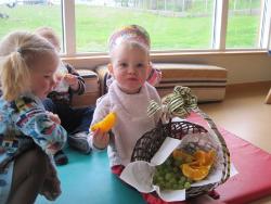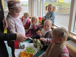 Í ávaxtastund sungum við fyrir hana afmælissönginn og hún bauð öllum upp á ávexti úr afmæliskörfunni.