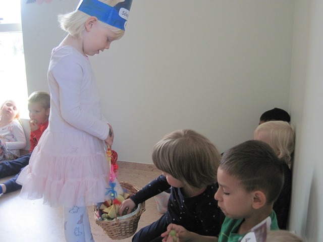 og að lokum bauð hún öllum á Kátakoti upp á ávexti úr afmæliskörfunni.