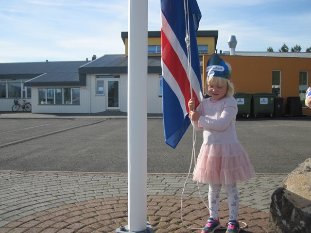 flaggaði íslenska fánanum, sungum fyrir hana afmælissönginn