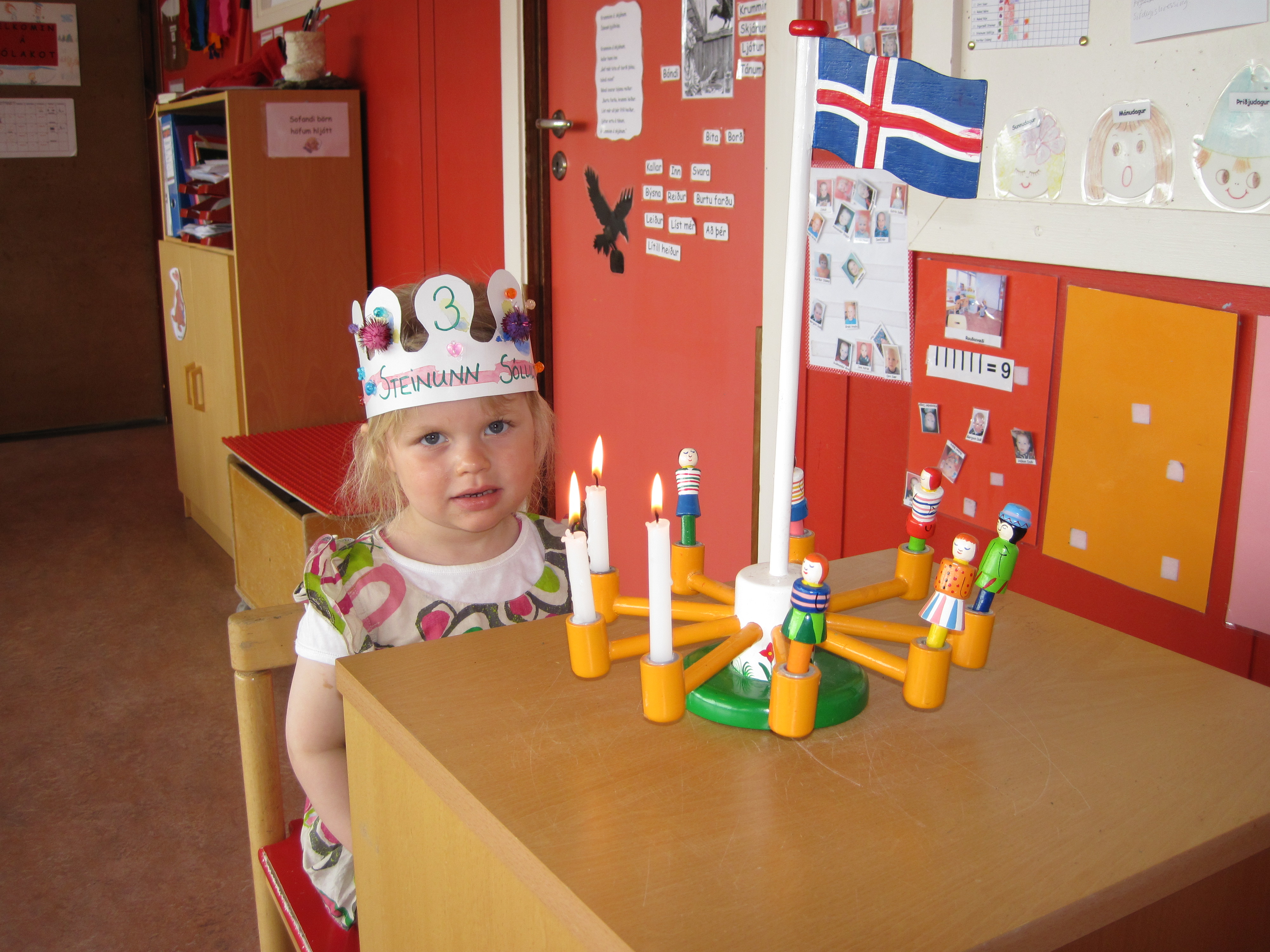 Í dag 4 júlí varð Steinunn Sóllilja 3 ára. Hún málaði sér kórónu og skreytti hana. Í ávaxtastundinni sungum við fyrir hana afmælissönginn og hún blés á kertin þrjú. Eftir sönginn bauð Steinunn Sóllilja öllum á Hólakoti upp á ávexti úr afmælisávaxtakörfunni. Við óskum Steinunni Sóllilju og fjölskyldu innilega til hamingju með daginn frá okkur öllum á Hólakoti.