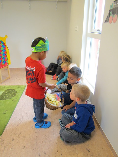 og að lokum bauð hann öllum á Kátakoti upp á ávexti úr afmæliskörfunni.