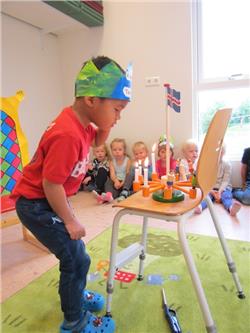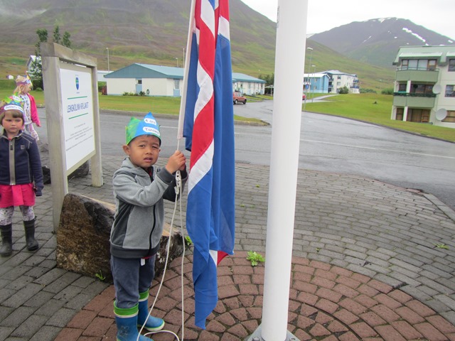 Tanawat bjó sér til glæsilega kórónu, flaggaði íslenska fánanum, sungum fyrir hann afmælissönginn