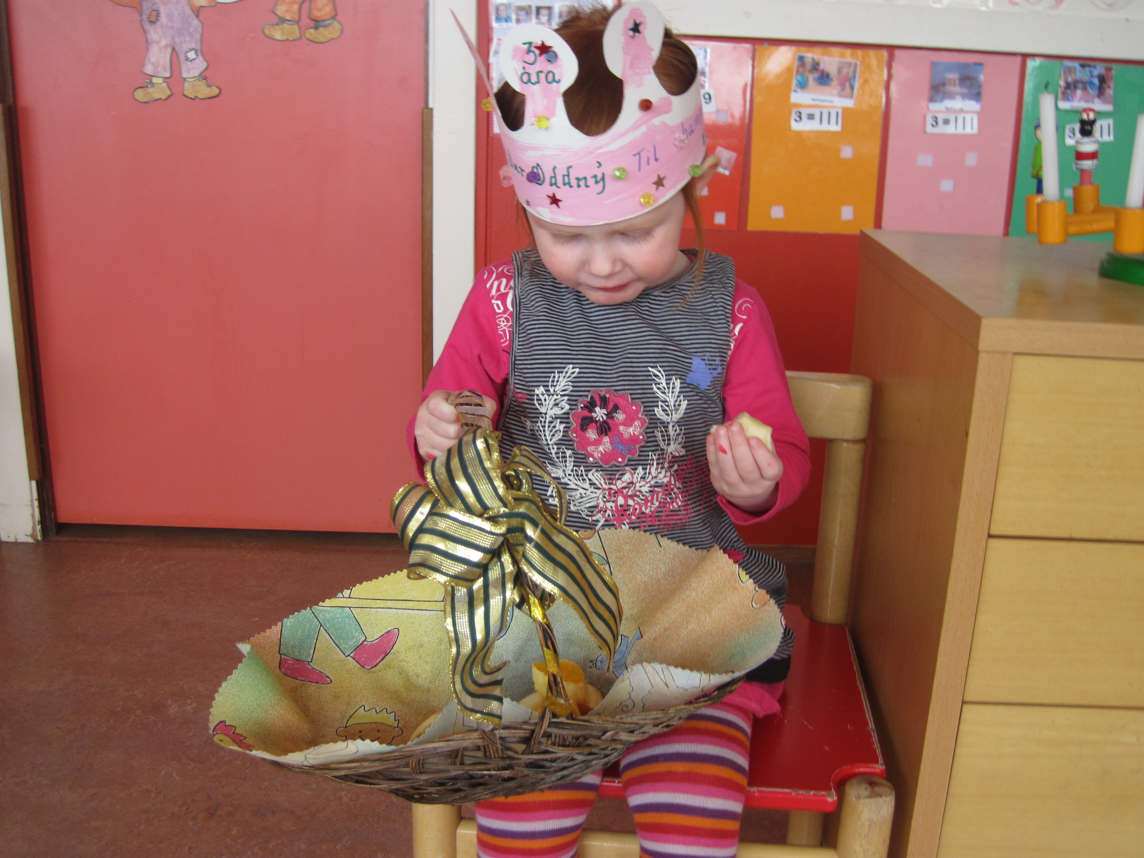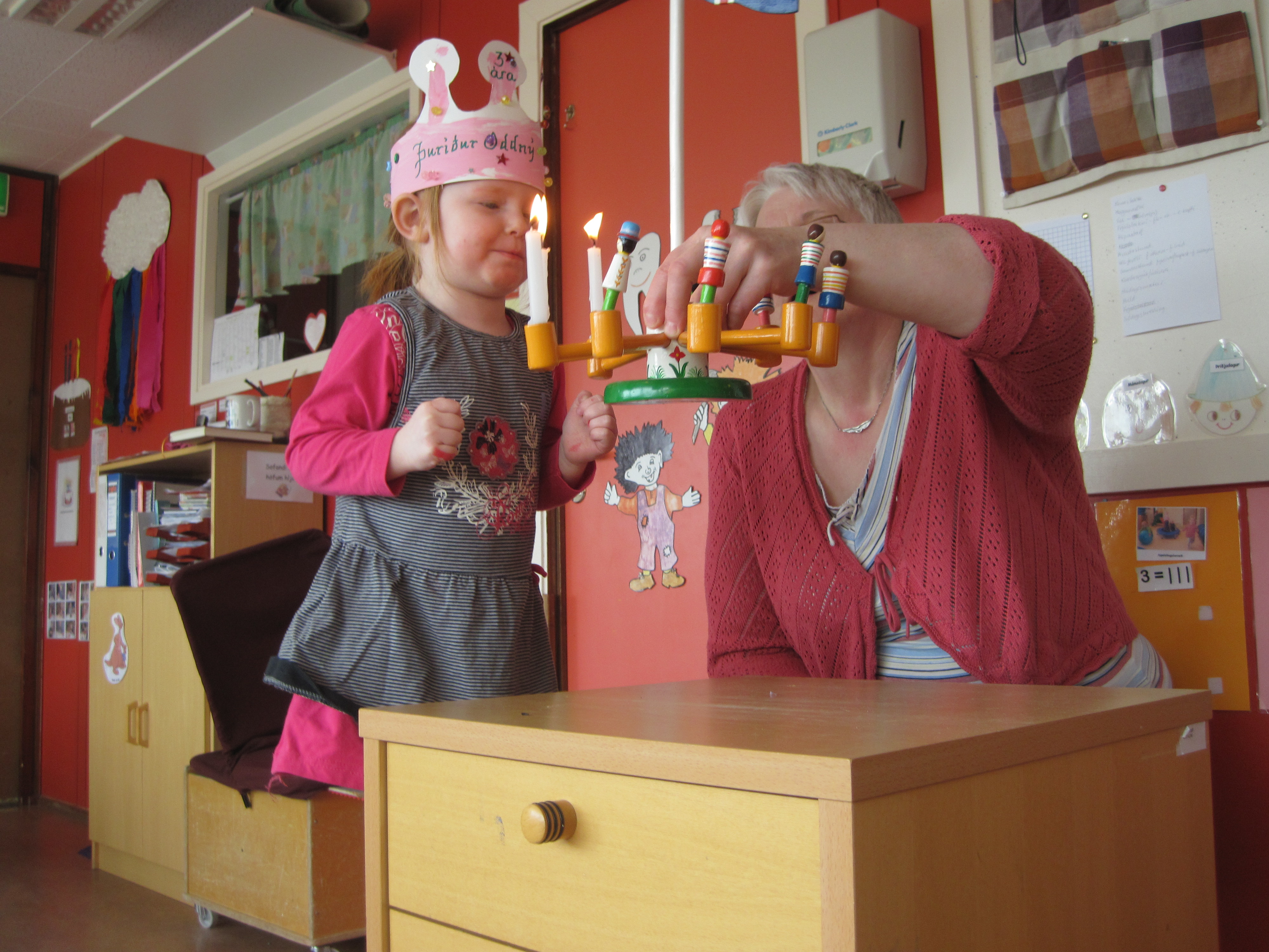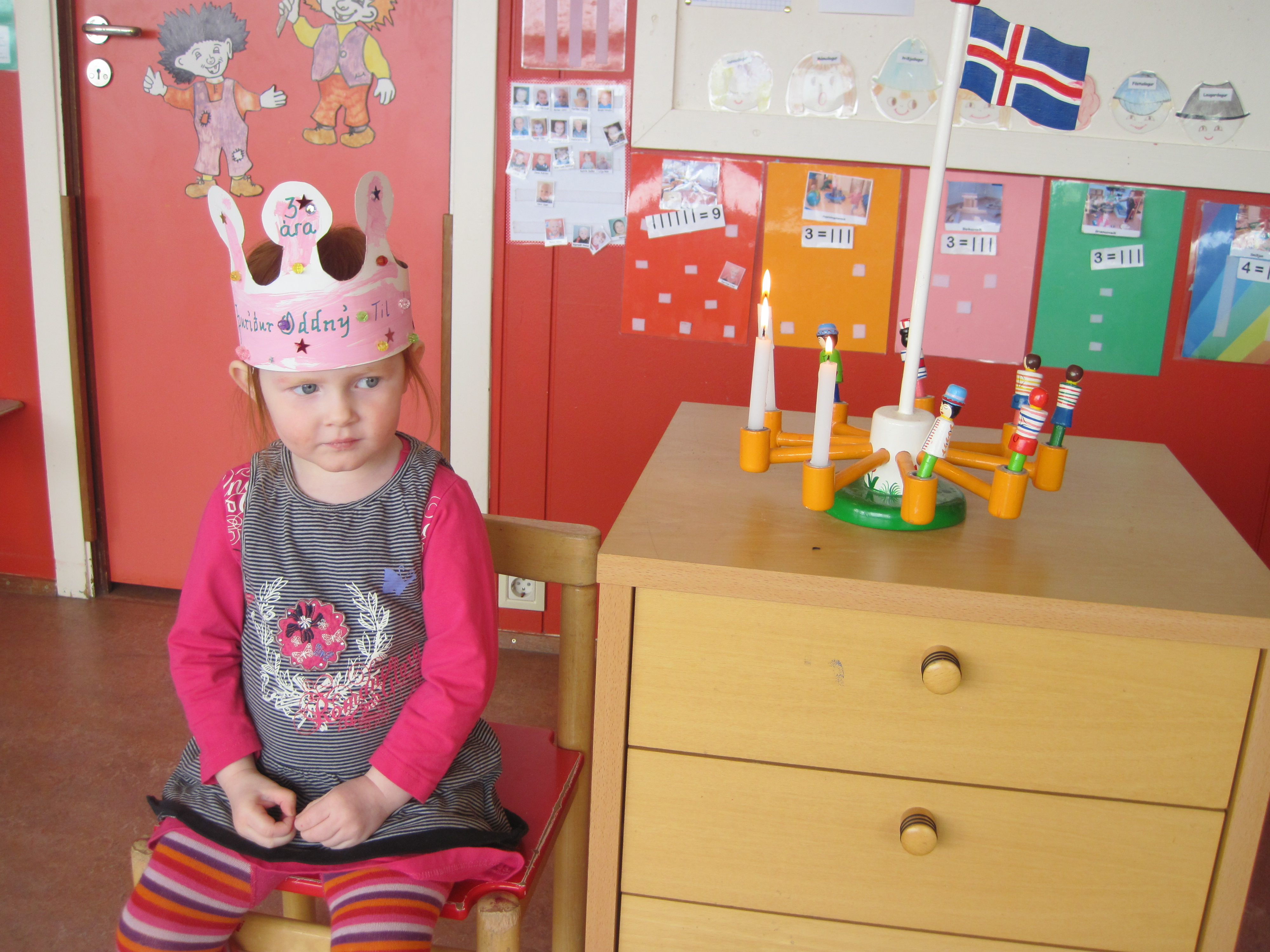Fimmtudaginn 5. maí varð Þuríður Oddný 3 ára og héldum við upp á daginn hennar þann dag. Hún bjó sér til kórónu og fór út og flaggaði íslenska fánanum. Í ávaxtastundinni sungum við fyrir hana afmælissönginn. Eftir sönginn bauð Þuríður Oddný öllum á Hólakoti upp á ávexti úr afmæliskörfunni. Við óskum Þuríði Oddný og fjölskyldu innilega til hamingju með daginn frá okkur öllum á Hólakoti.