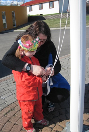 Þuríður Oddný málaði sér kórónu og flaggaði íslenska fánanum.
