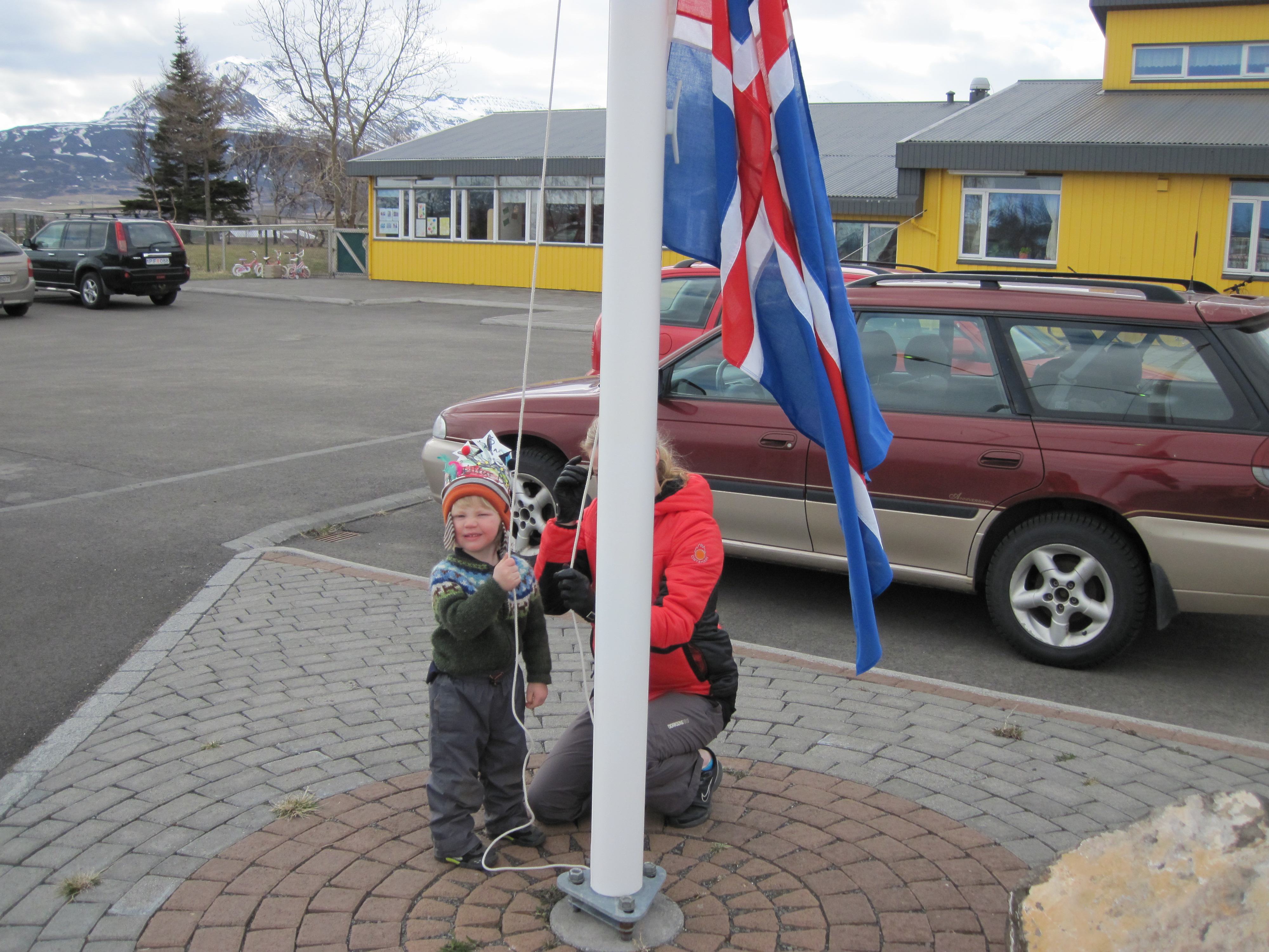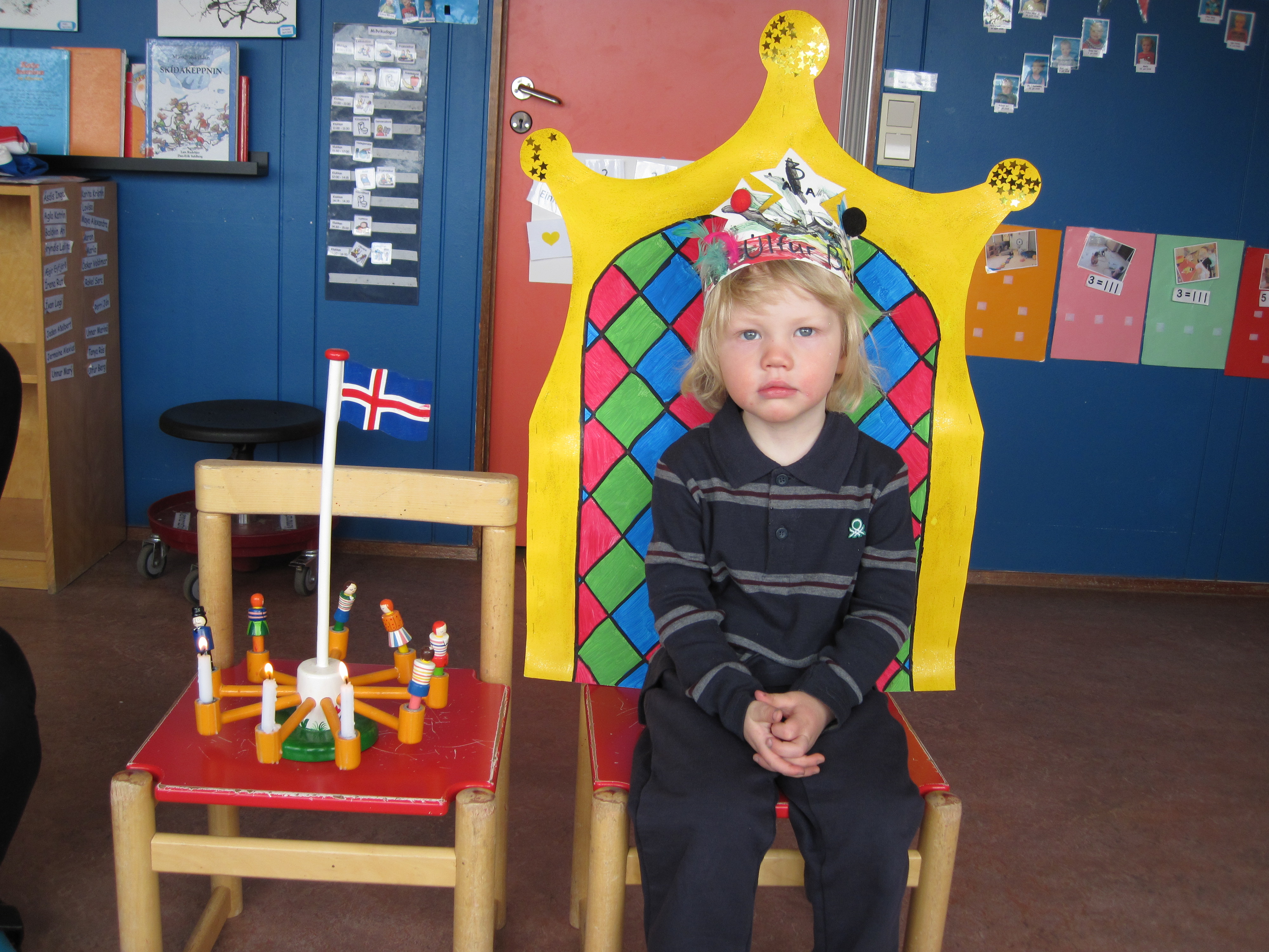 Hann málaði sér kórónu, flaggaði íslenska fánanum.