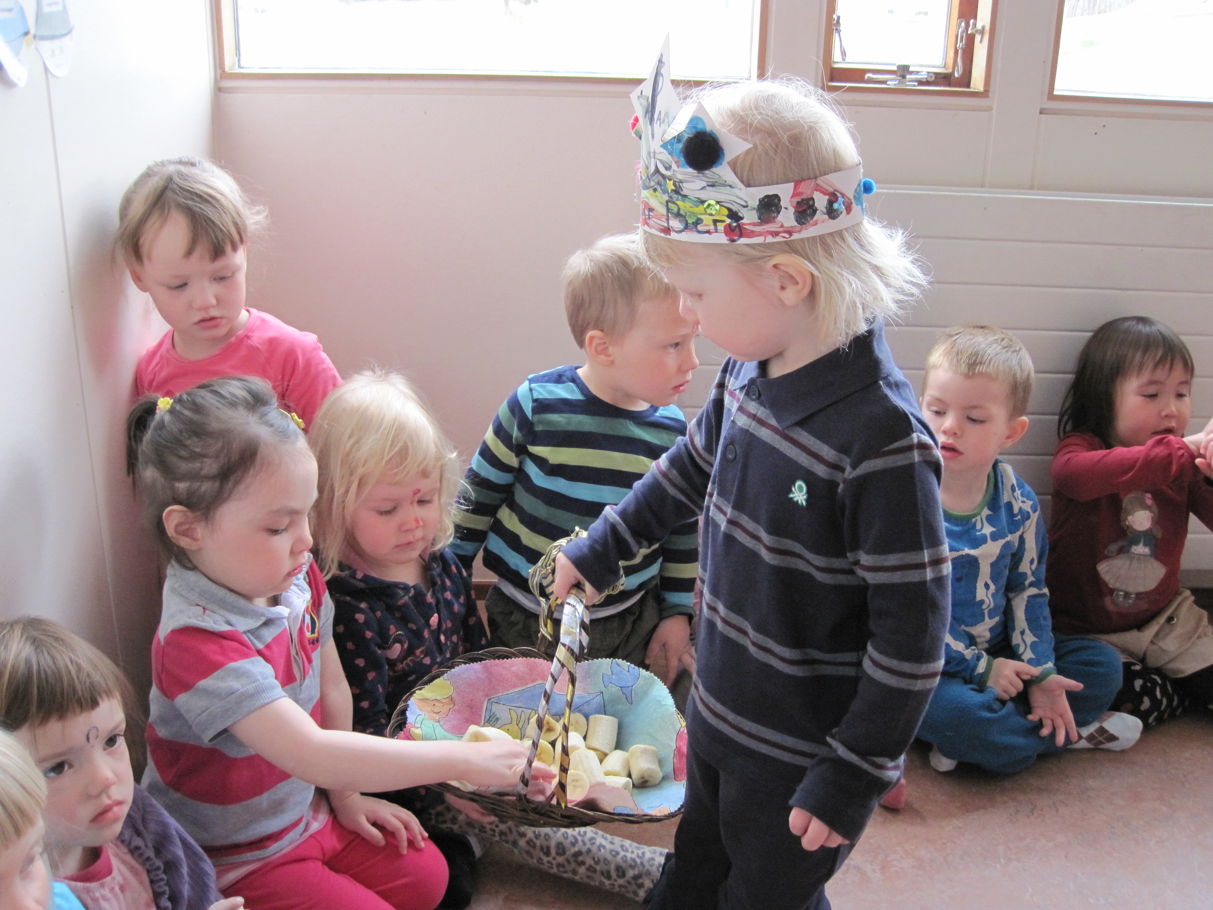 Eftir sönginn bauð Úlfur Berg öllum á Skakkalandi upp á ávexti úr ávaxtakörfunni.