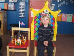 Í ávaxtastundinni sungum við fyrir hann afmælissönginn og hann blés á kertin þrjú.