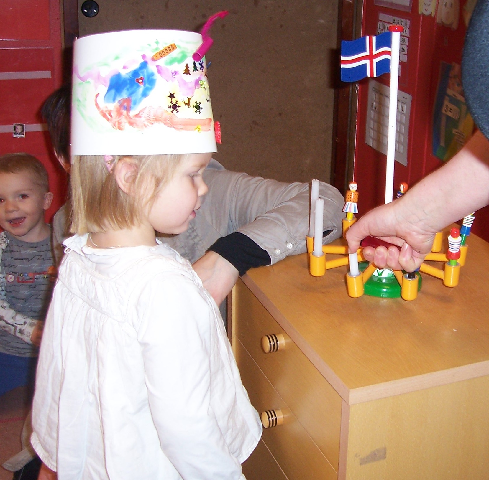 Unnur Elsa varð 3 ára þann 1. janúar. Við héldum upp á afmælið hennar mánudaginn 4. janúar með því að hún bjó til kórónu, við sungum afmælissönginn, Unnur Elsa bauð upp á ávexti, fór út og flaggaði og var þjónn dagsins. Við óskum henni innilega til hamingju með daginn.