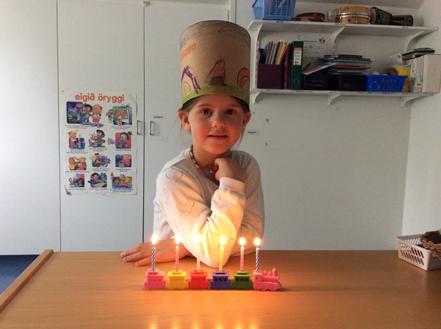 Valgerður Fríður bjó sér til fallega kórónu, blés á kertin 6 og