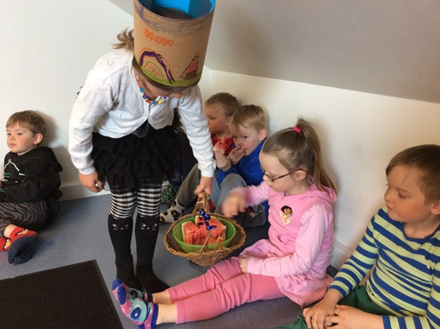 bauð svo öllum í Sólkoti upp á ávexti úr afmæliskörfunni.